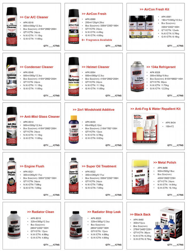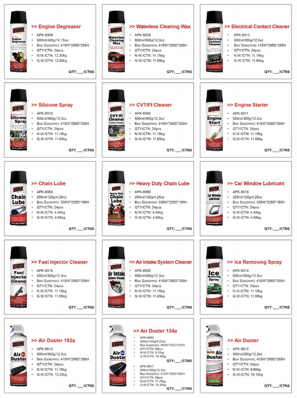 | Evidenziare: | schiuma detergente per auto biodegradabile,spray antigelo refrigerante aerosol,sigillante per pneumatici detergente per freni |